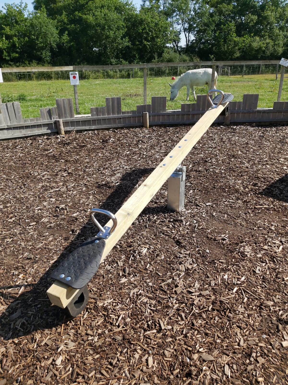 This commercial standard seesaw comes with excellent quality pressure-treated timber, metal anchor, stainless steel handgrips, and rubber seats and stopper.