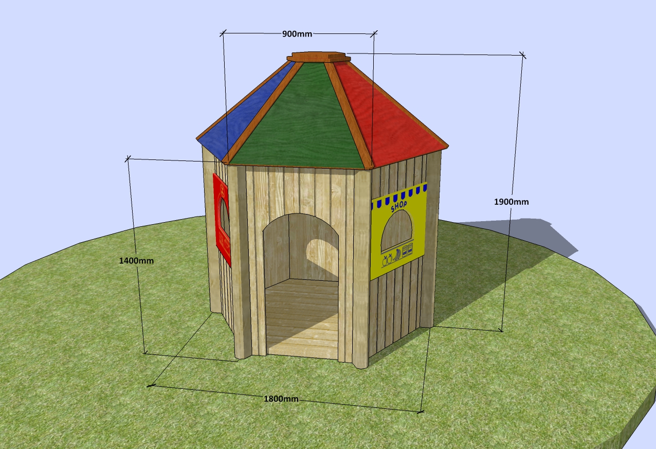 AllOutPlay playhouses are well designed and craftsman built by hand to a high quality specification. All our structures are easy to erect and dismantle. We use a premium grade Redwood Pine timber with a specially created 15mm or 20mm tongue and groove profile throughout. The quality planed timber is high-pressure treated against fungal decay infestation using non-toxic (CCA-free) liquids and sourced from fully managed, renewable plantations. The hexagonal roofs are made from tough marine plywood and hardwood. All hanging bars are made from Douglas Fir.