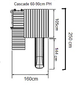 60+90cm platform height: 2.50m deep x 1.60m wide – comes with a 1.75m slide