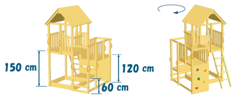Most play tower models give you a choice of platform height: 1.2 m or 1.5 m in most towers and 60-90/90-120cm on the Cascade.