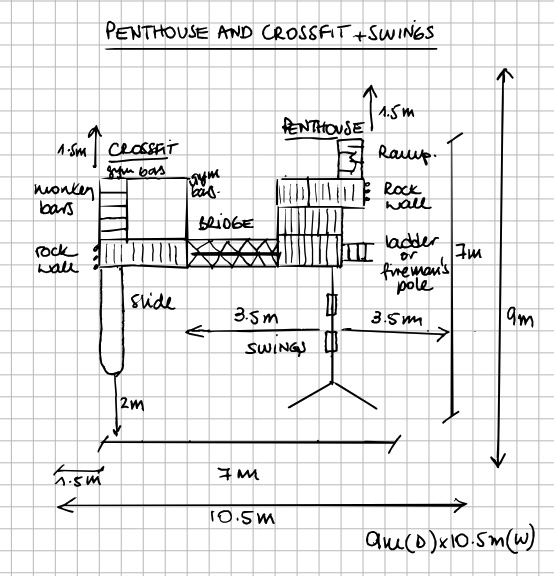 - ramp with rope on Penthouse to a 1.2m platform height (not showing in the photo)