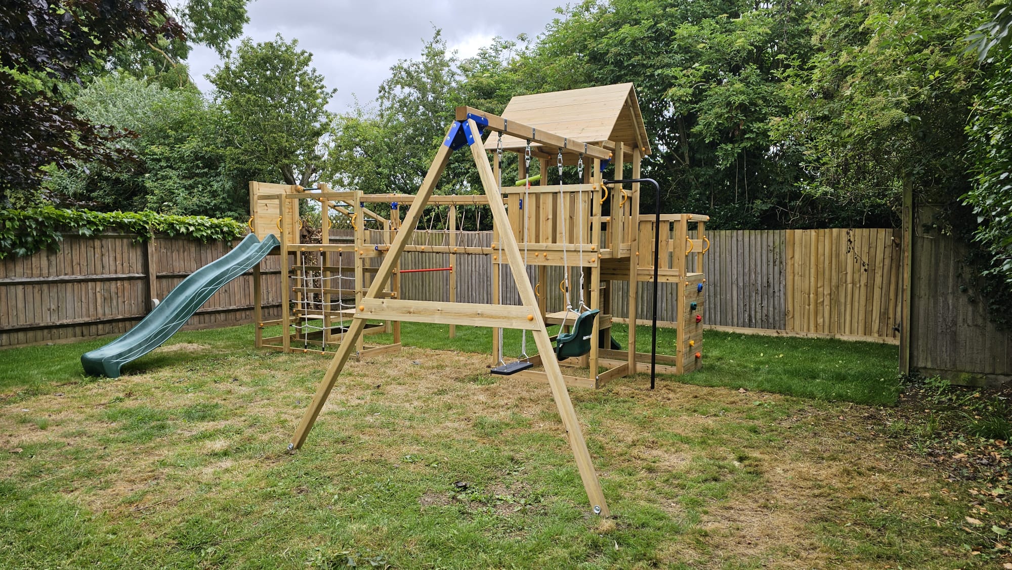 The installation service for climbing frames and playhouses doesn’t include groundworks. The playsets and towers need to be installed on flat and level ground with good drainage. If you are unsure about if the surface in your garden is suitable or not, please contact us.
