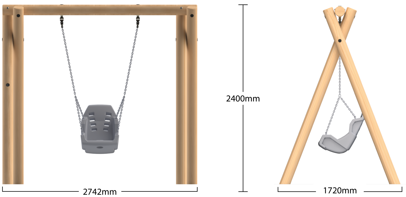 Safety surface area dimensions above are for wet pour surfacing (synthetic). If loose fill is being used the length needs to be increased to 8.0m (from 7.0m) to allow an extra 500mm of surfacing at either end.