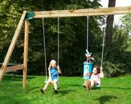 The range offers a free standing swing set, with 2 swing seats and chains. They don’t offer baby seats.